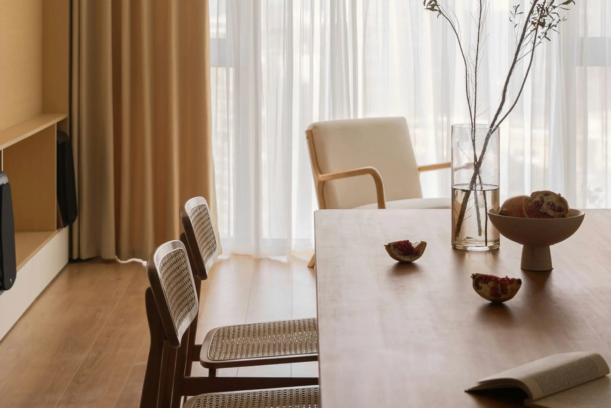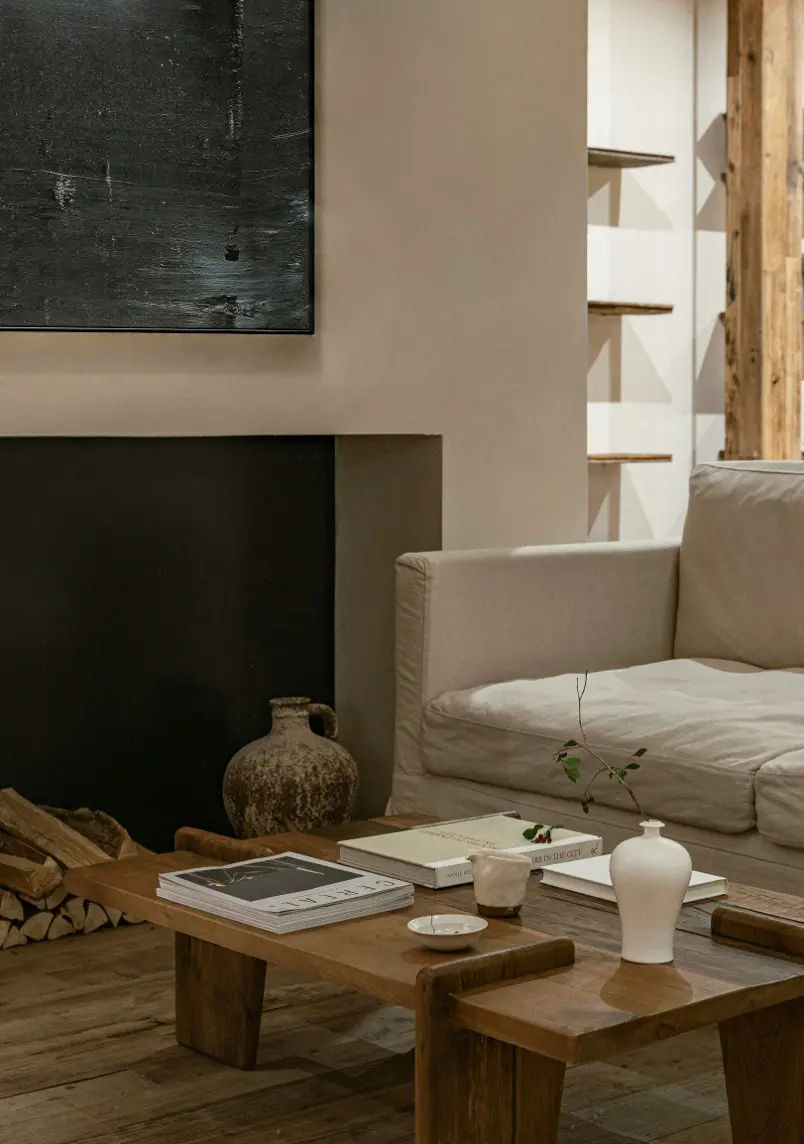 Natural textures, such as wood, stone, and woven materials, combined with rich, deep blue tones, create a harmonious flow that seamlessly connects the various spaces throughout the home. This thoughtful combination not only enhances visual continuity but also evokes a sense of calm and cohesion, making each room feel like an intentional extension of the next.